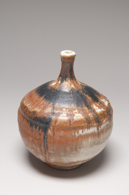Stoneware Bottle, Spodumene Glaze w/Iron Oxide