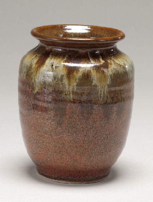 Stoneware Vase, Red Kaki w/Semi Matt Gold
