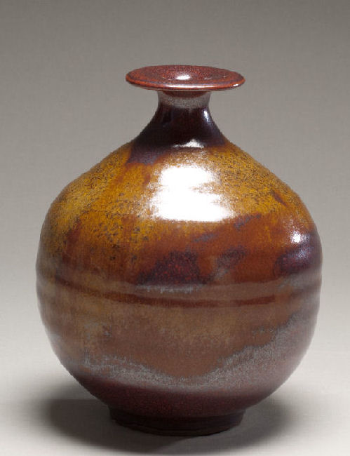 Stoneware Bottle/Red Kaki Glaze w/ Rutile