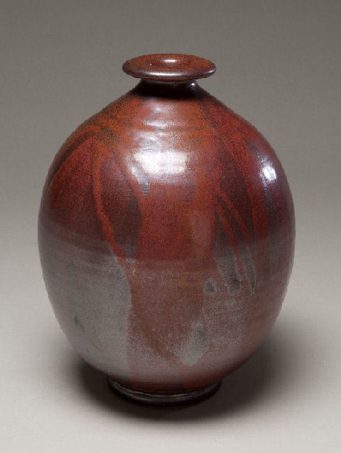 Stoneware Bottle, Red Kaki Glaze, Overlapping
