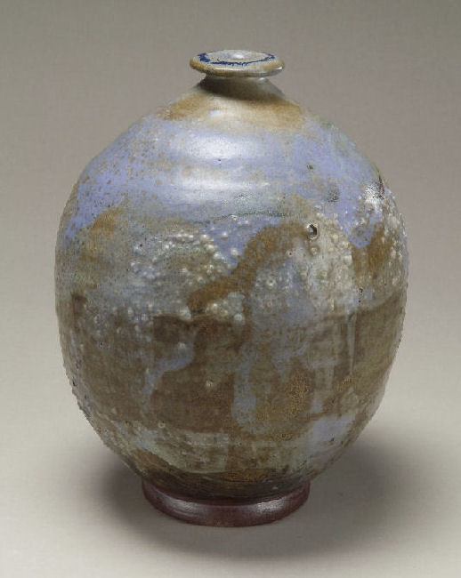 Stoneware Bottle, Over Lapping Semi Matt Glazes