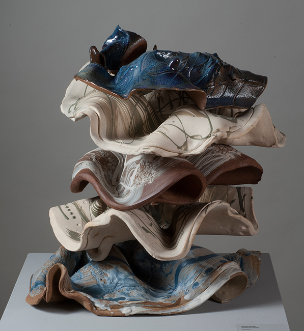 White & Brown Stoneware w/engobes and chun glaze/Relationships/2014/About 2 feet tall