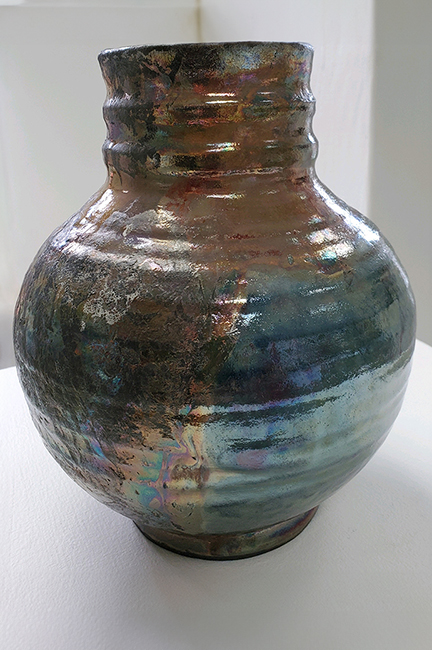 Raku Vase/Back/9-inch tall/2021