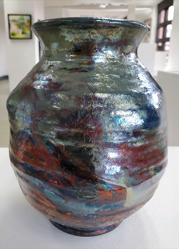 Raku Vase/Front/9-inch tall/2021
